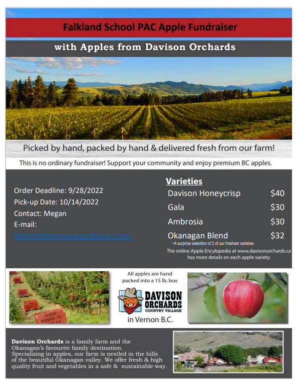 CLICK HERE to read information from our PAC about their upcoming Apple Fundraiser with Davison Orchard.