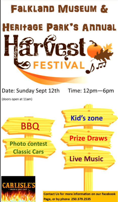 CLICK HERE to access information about the Falkland Museum and Heritage Park’s Annual Harvest Festival.