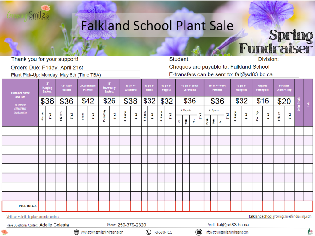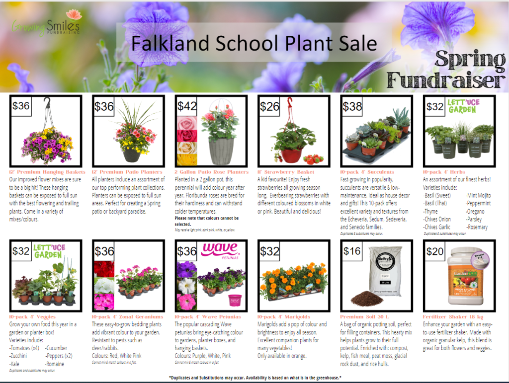 Our school plant sale is under way! Orders are due by Friday, April 21st. Plant pick up will be Monday, May 8th (time TBA).