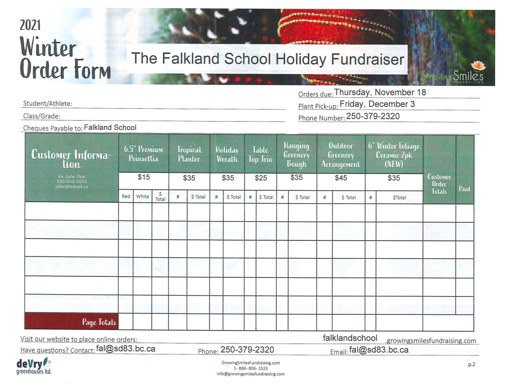 Order forms available at the office. The student with the most sales will receive a gift card to the local store.